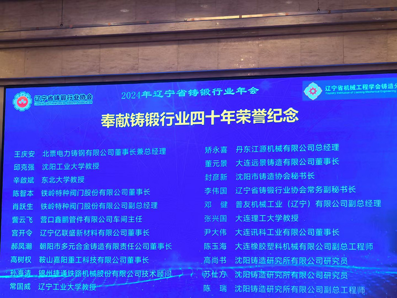 恭喜鞍山嘉陽重工科技有限公司 董事長高樹權(quán)先生獲得遼寧省“奉獻(xiàn)鑄鍛行業(yè)四十年榮譽(yù)獎”!